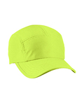 100% polyester; Runner style; Unique panel design; Precurved bill with self-fabric binding; Adjustable webbing strap with technical buckle closure;